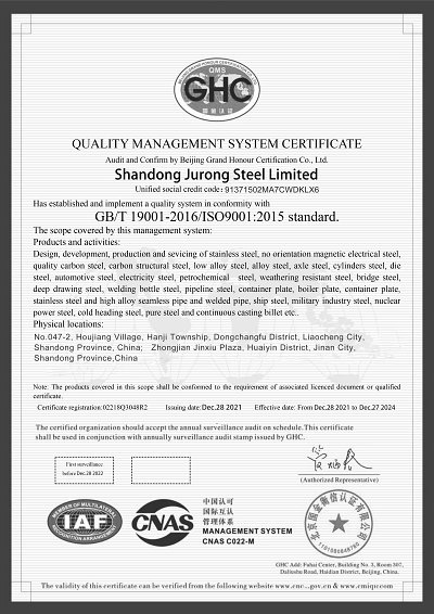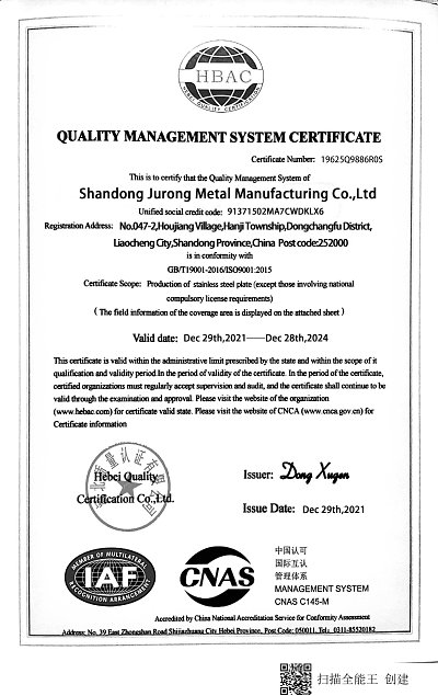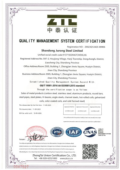 Shandong Jurong Steel Limited adhering to the "professional, honest, trustworthy" business philosophy is committed to the production of stainless steel, carbon steel, galvanized, copper, aluminum and other products, to provide world-class product quality and service. We have many years of production and business experience, our integrity and quality service has been unanimously affirmed and praised by customers in various industries, and won excellent goodwill for the enterprise.